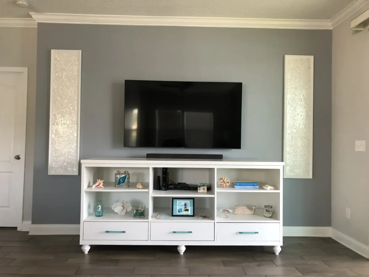I ordered some South Seas Super White Mini Brick Pearl Shell tiles. The tiles are beautiful! I was going to have the tiles installed directly on the wall but because the tiles are so beautiful, I decided to have the tiles made into two art pieces. That way, if I move I will be able to take these art panels with me. Cielo Stone & Tile has a large selection of products to choose from, so you will find something you like there. The sales staff is friendly and helpful. I asked if they knew of an installer and the craftsman they recommended did such an excellent job! He was very professional and detailed oriented.